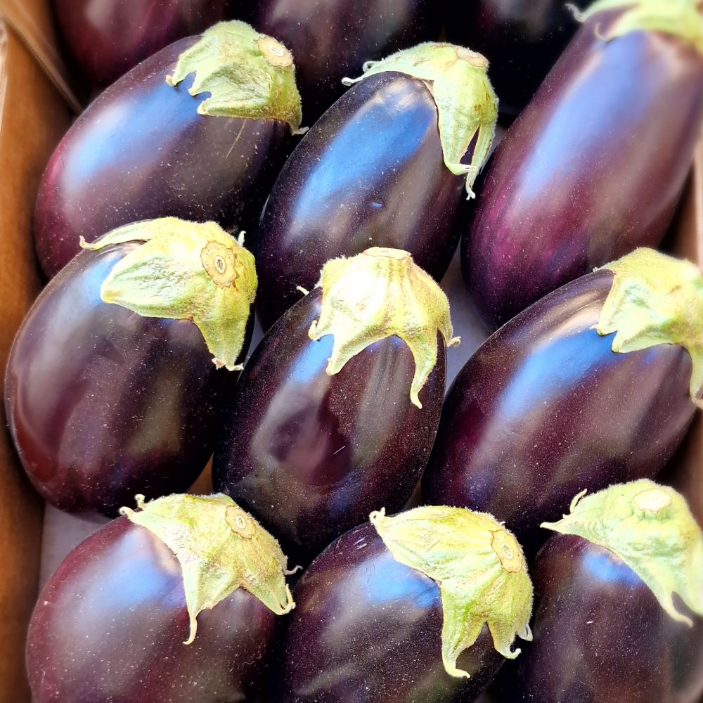 Verlängert rundliche violette Auberginen mit feinem Geschmack. Die Tonda ist eine alte, bewährte Sorte mit denen die Italiener gerne Antpasti herstellen oder für Aufläufe nutzen.