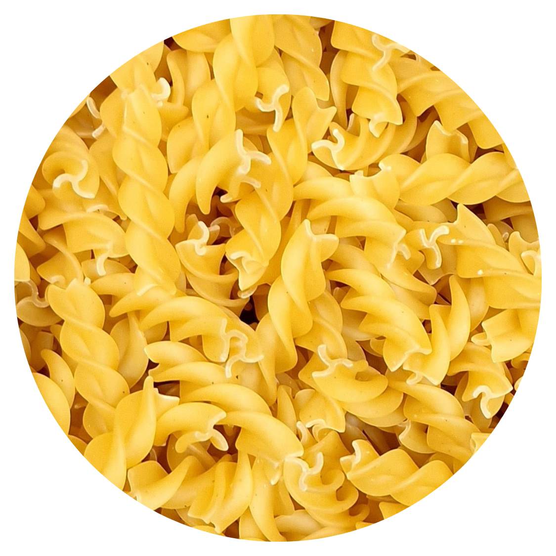 Fusilli Nudeln aus Hartweizengrieß nehmen durch ihre gedrehte Form sehr gut cremige Saucen auf.