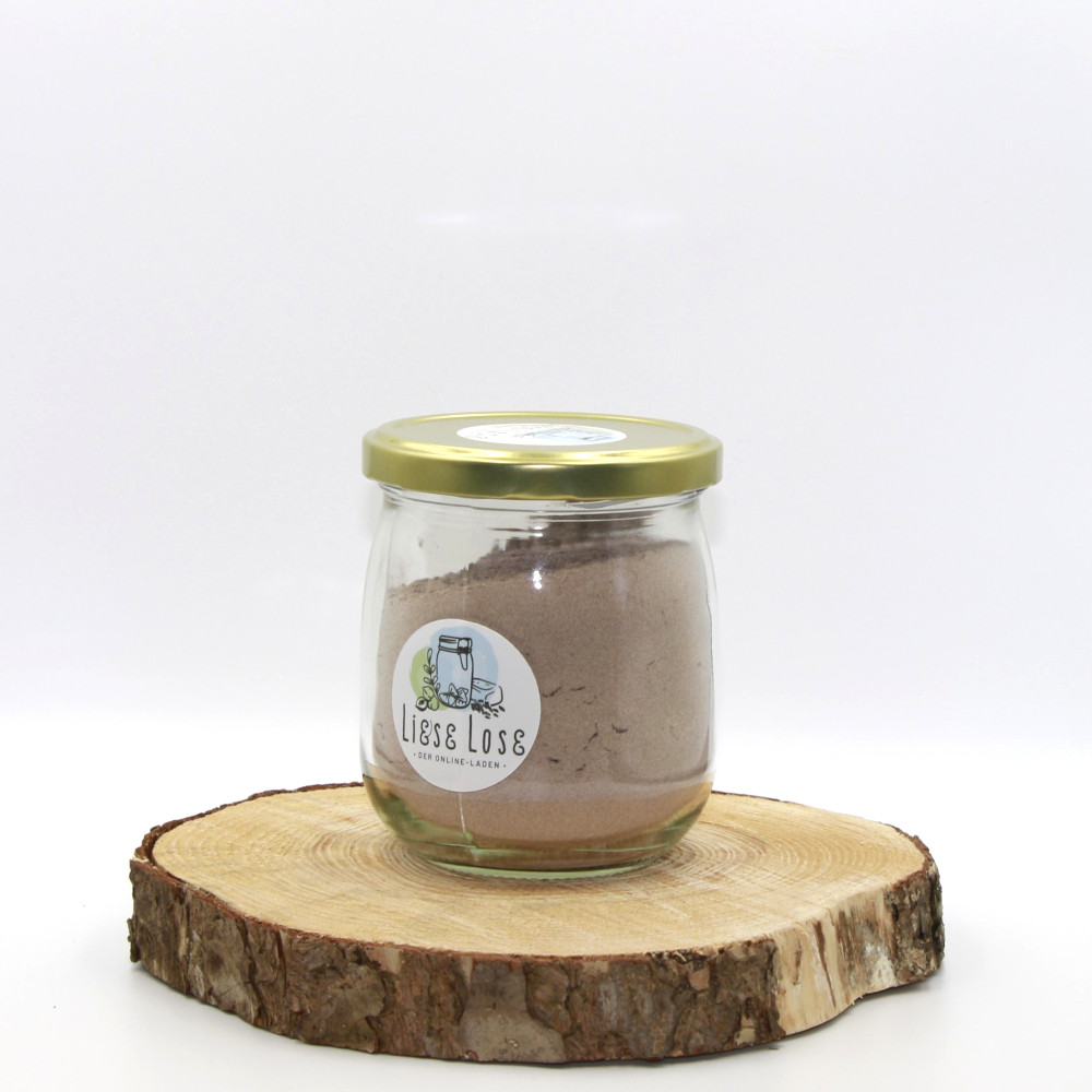 Diese Pulvermischung mixen wir selber und bieten Euch einen ultra schokoladigen Pudding mit 25% Kakaoanteil an.