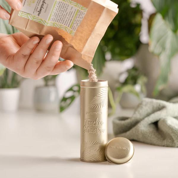 Wieder mal auf den letzten Drücker aufgewacht? Keine Zeit, dir zwischen Feierabend und Date noch schnell die Haare zu waschen? Das vegane Trockenshampoo von puremetics ist die optimale Unterstützung für zwischendurch. Das Puder macht Deine Haare schnell wieder fresh, bindet Fett und sorgt für himmlischen Duft.